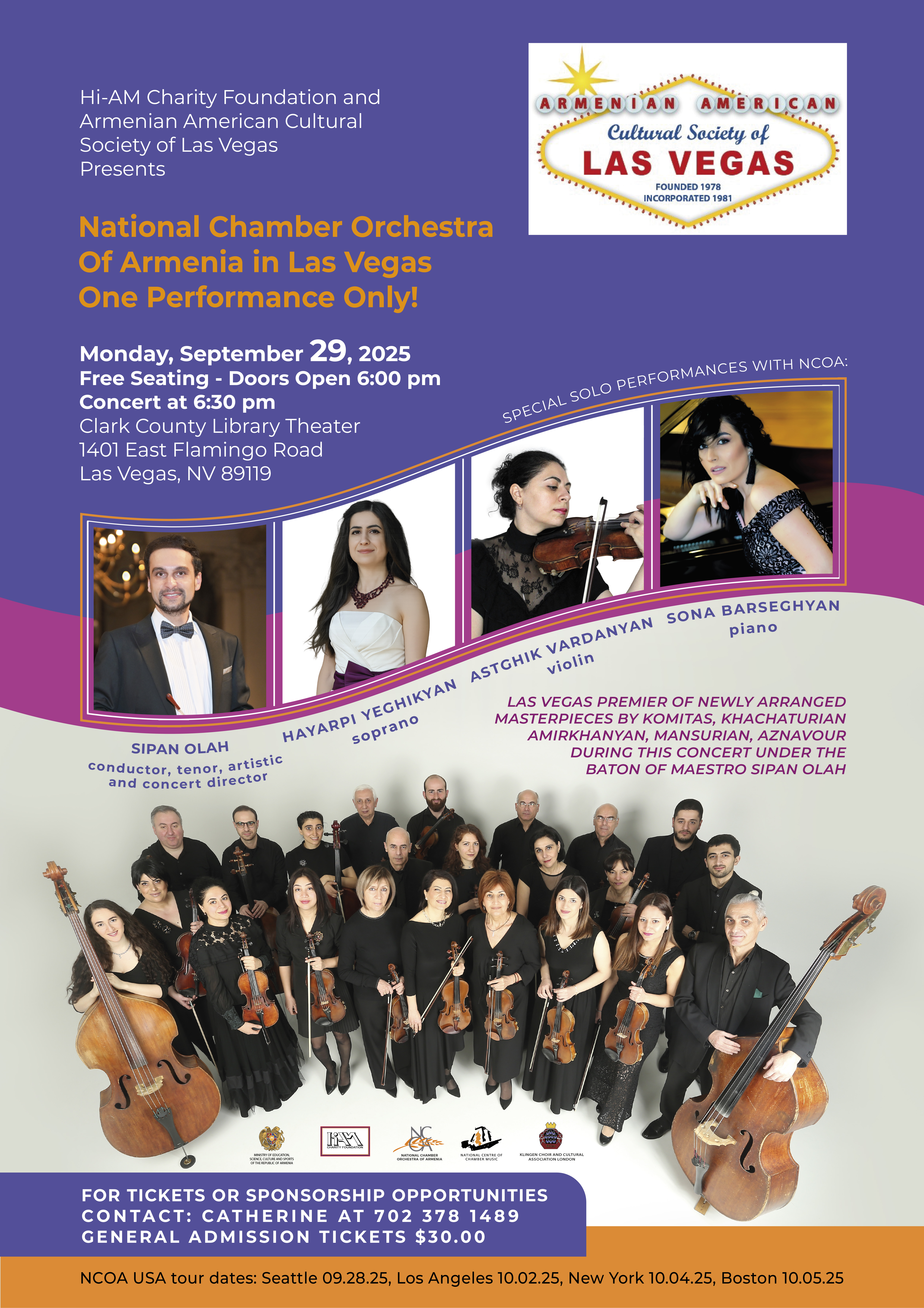 Las Vegas Book Your Calendars – Monday, September 29, 2025 National Chamber Orchestra of Armenia in Las Vegas Tickets are available online at ItsMySeat.com